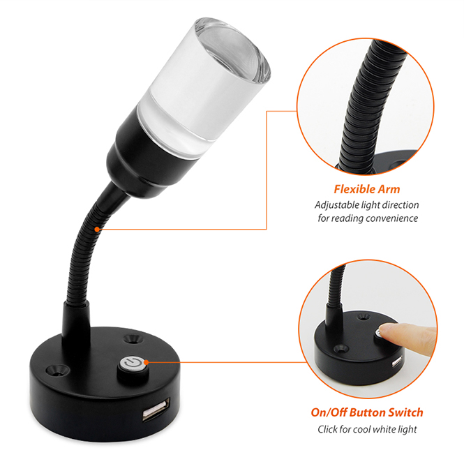 2. Adjustment for direction: Its flexible arm can adjust light direction, thereby making your reading convenient.