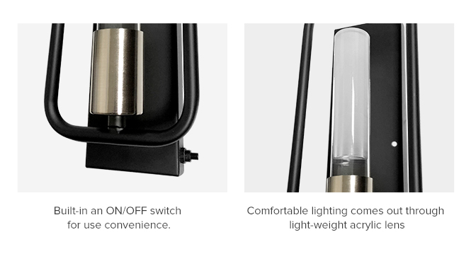 This light is designed for wall lighting, therefore it is so convenient that only 1 screw is needed. Its matte black bracket is well-designed to be helpful for heat dissipation. Bright warm white light is given to ensure there is enough illumination in your space. | |||||||||||||||||