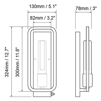 Part NO.: DWS-X4ACBN Voltage: DC 12V Wattage: 3W Current: 245mA Lighting color: pure white Luminous flux: 73lm Color temp.: 3500 K Dimension: 5.1(L) x 3(W) x 12.7(H) inch Weight: 39 OZ |